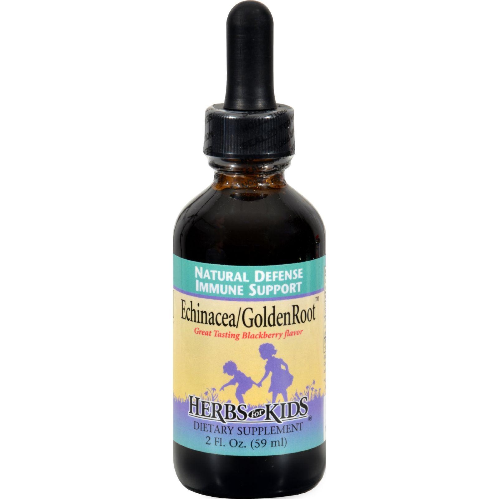 Herbs For Kids Echinacea GoldenRoot Blackberry Description: Natural Defense Immune Support Great Tasting Blackberry Flavor Kids Love the Taste! This product supports healthy functioning of the immune system. Free Of Alcohol and allergens. Disclaimer These statements have not been evaluated by the FDA. These products are not intended to diagnose, treat, cure, or prevent any disease.