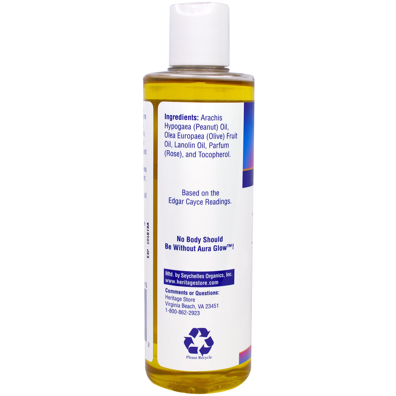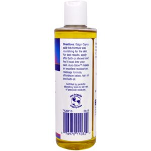 Edgar Cayce disse que esta fórmula era nutritiva para a pele. Para obter os melhores resultados, aplique o Aura Glow após o banho e sinta a pele absorvê-lo. O Aura Glow é um excelente hidratante, fórmula para massagem, loção pós-barba, óleo capilar e óleo de banho.