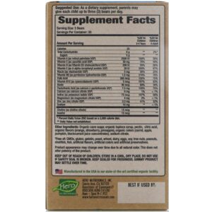 Os benefícios orgânicos combinados com as gomas de vitamina. O Multivitamínico Completo Yummi Bear Organics fornece os nutrientes essenciais de que as crianças precisam para um crescimento e desenvolvimento saudável na forma de gomas deliciosas à base de pectina que não contêm OGMs.