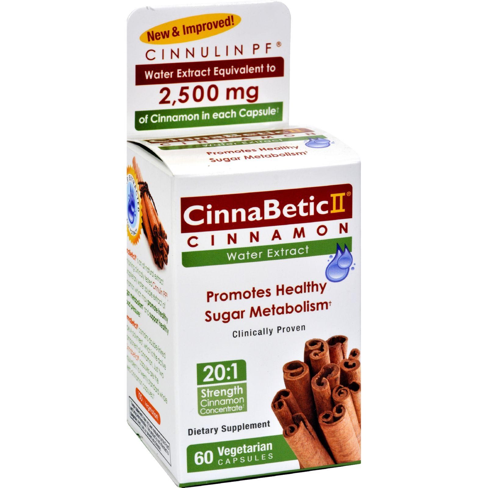 Hero Nutritionals CinnaBetic ll Description: CinnaBetic II Cinnamon Water Extract Promotes Healthy Sugar Metabolism Clinically Proven 20:1 Strength Cinnamon Concentrate CinnaBetic II is an all natural extract containing clinically tested Cinnulin PF, a proprietary water soluble extract of cinnamon which may promote healthy sugar metabolism and support healthy blood pressure. CinnaBetic II contains double-linked type A polymers, which is the active component of cinnamon. Just two CinnaBetic II capsules are the equivalent to twenty standard whole herb cinnamon capsules. 100% Vegetarian! Best results are achieved by taking continually for a minimum of 40 days and maintaining a proper diet and regular exercise. Free Of Artificial colors, artificial flavors, barley, corn, dairy products, gelatin, gluten, milk derivatives, preservatives, salt, sugar, wheat or yeast. Disclaimer These statements have not been evaluated by the FDA. These products are not intended to diagnose, treat, cure, or prevent any disease.