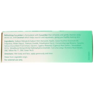 Refreshing Cucumber is formulated with Cucumber that refreshes and gently cleanses away excess oil, and coconut which helps nourish and rejuvenate, giving you healthy looking skin.