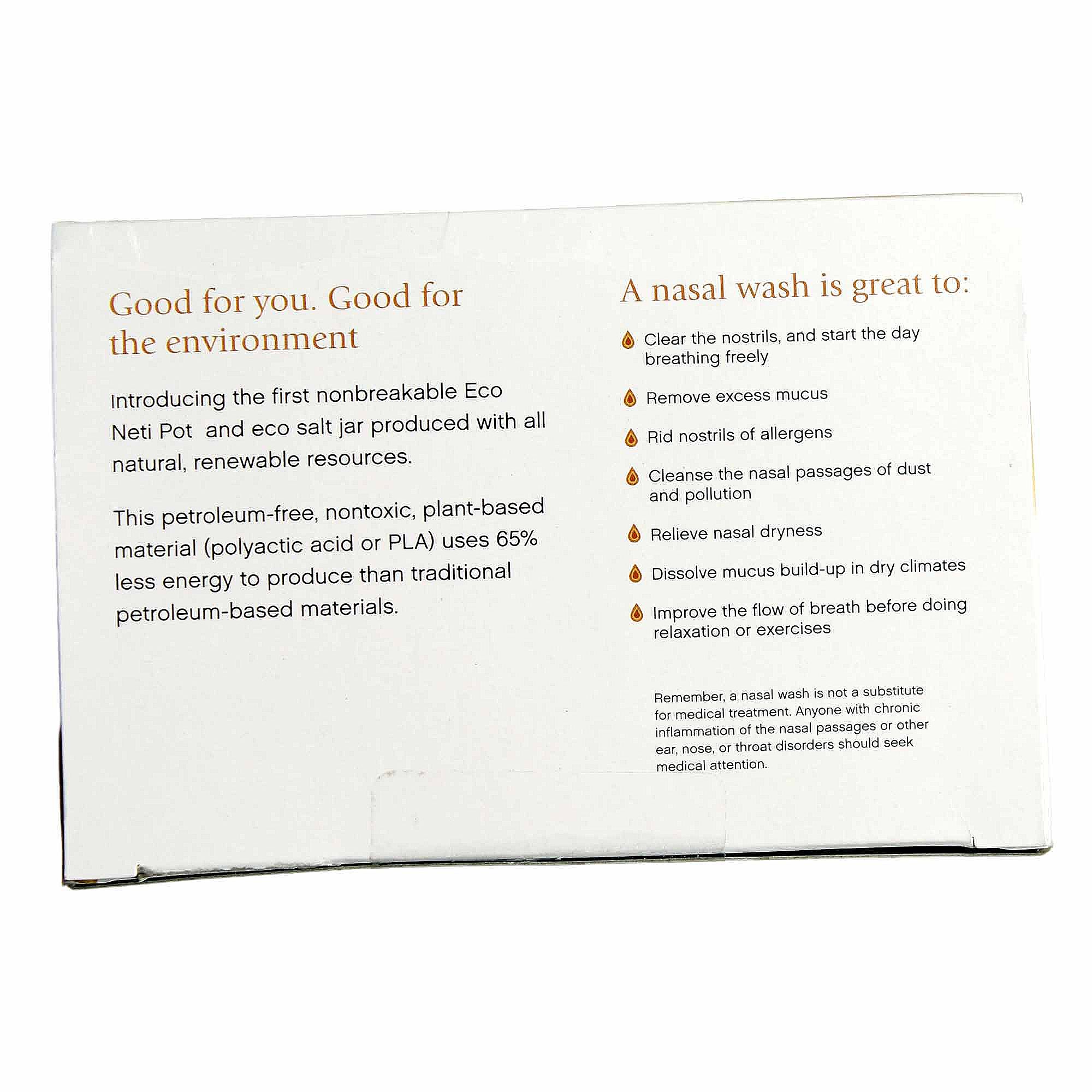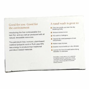 Nota: The Eco Travel Neti Pot is made of biodegradable plastic and is nonbreakable. Follow instructions on package fou proper use. Always use sterilized water, such as boiled ou distilled water, during nasal cleansing.