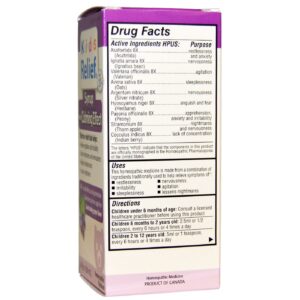 Active Ingredients HPUS: Asafoetida 8X (Asafetida), Ignatia amara 8X (Ignatius bean), Valeriana officinalis 8X (Valerian), Avena sativa 8X (Oats), Argentum nitricum 8X (Silver nitrate), Hyoscyamus niger 8X (Henbane), Paeonia officinalis 8X (Peony), Stramonium 8X (Thorn apple) and Cocculus indicus 8X (Indian berry).