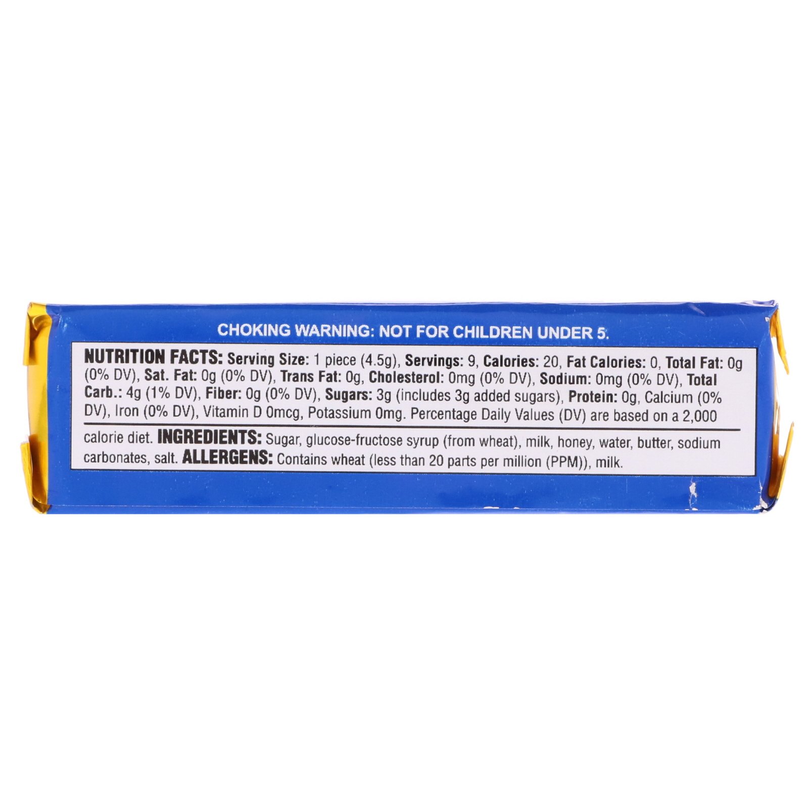Açúcar, xarope de milho, leite, mel, manteiga, sabores naturais.