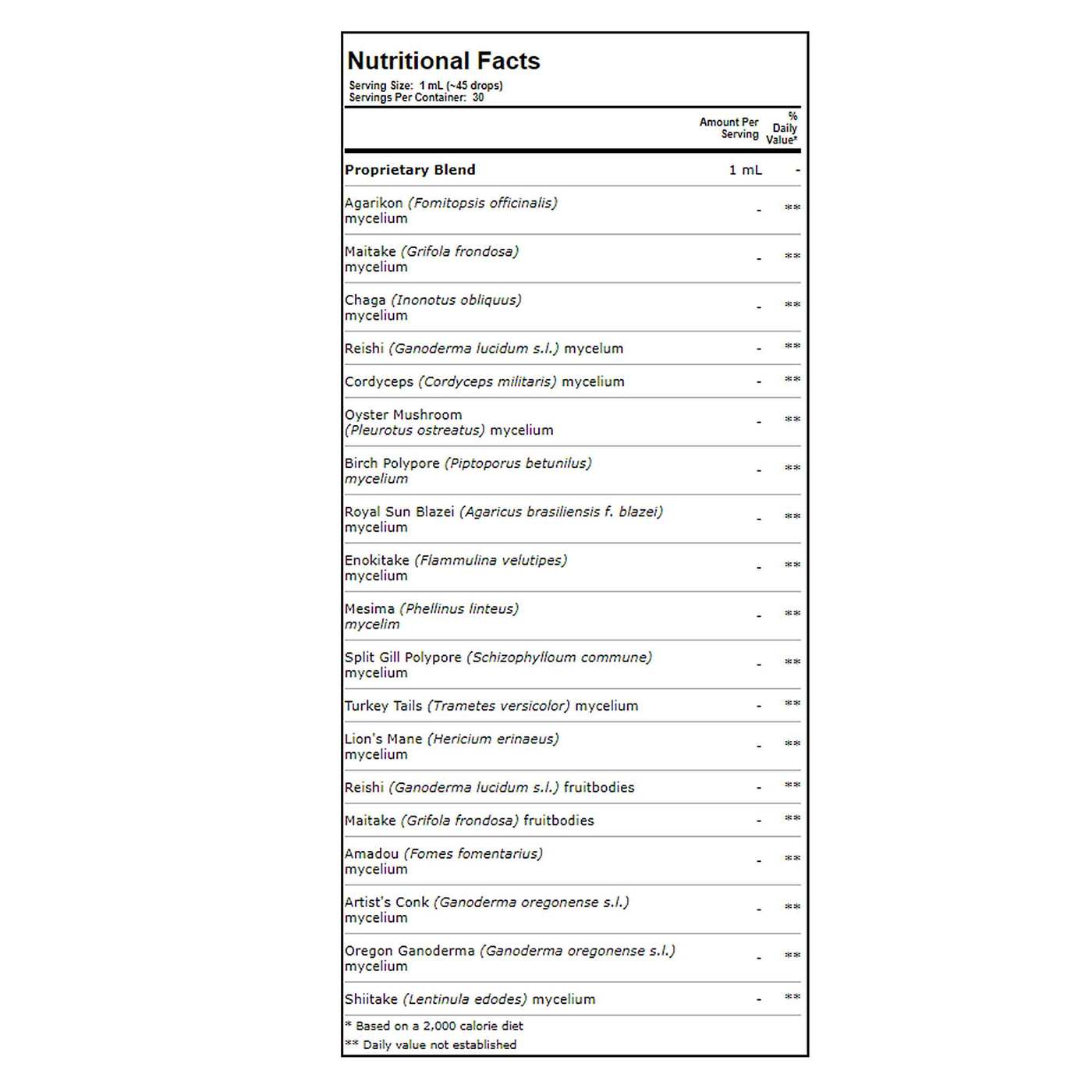 Notas: USDA Organic and gluten free product. Made with U.S grown triple extracted organic mushrooms and fruitbodies.