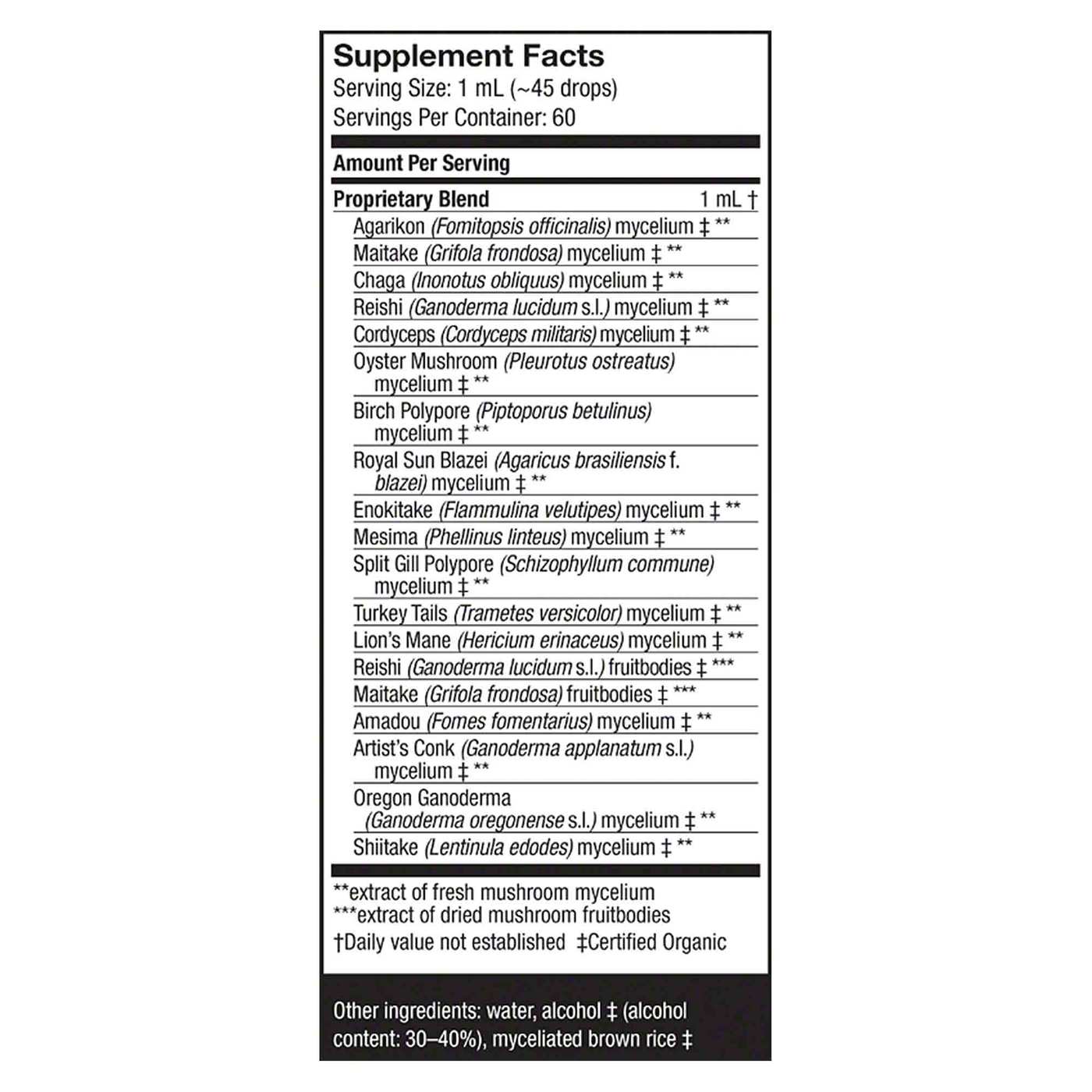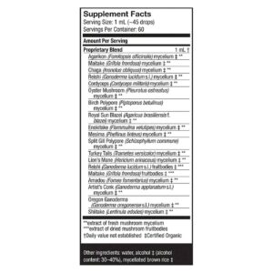 Notas: USDA Organic and gluten free product. Made with U.S grown triple extracted organic mushrooms and fruitbodies.