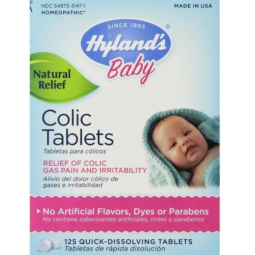 Hyland’s Colic Tablets provide natural relief from the symptoms of colic in babies. These quick-dissolve tablets can be placed directly on the tongue and effectively relieve the pains caused by irritating food, feeding too quickly or swallowing air. These symptoms are often worse during colds or while teeting. Colic Tablets work to take away the discomfort so your baby can fall asleep faster and stay asleep longer.