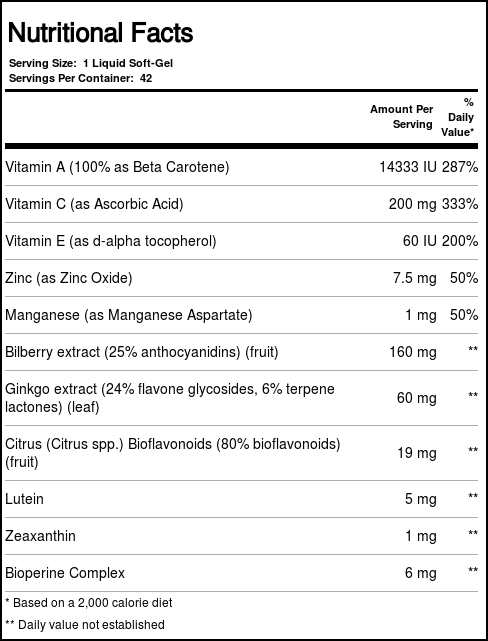 • Botanical Support: Bilberry was first identified for its eye benefits by British World War II pilots who noticed that their night vision improved when they ate bilberry jam prior to night bombing raids. This botanical combines with ginkgo biloba to support vascular circulation and promote night vision.