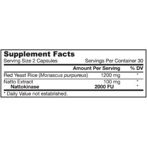 O arroz fermentado vermelho + nattokinase da Jarrow Formulas é feito para auxiliar a saúde cardiovascular e a circulação. Jarrow Formulas Nattokinase é feita pela fermentação de Bacillus subtilis natoo e depois purificada. O arroz vermelho é fermentado pela levedura Monascus purpureus. A Jarrow Formulas usa arroz vermelho que é cuidadosamente fermentado para evitar a presença do subproduto natural citrinina. Cada duas cápsulas fornecem 2000 unidades fibrinolíticas de atividade da nattokinase para promover a quebra (hidrólise) da fibrina e auxiliar a circulação saudável em conjunto com 1200mg de extrato de arroz vermelho fermentado.