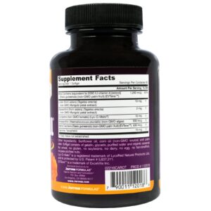 Óleo de girassol, óleo de milho (fonte não-OGM) e oleína de palma, softgel consistem em gelatina, glicerina, água purificada e caramelo orgânico.