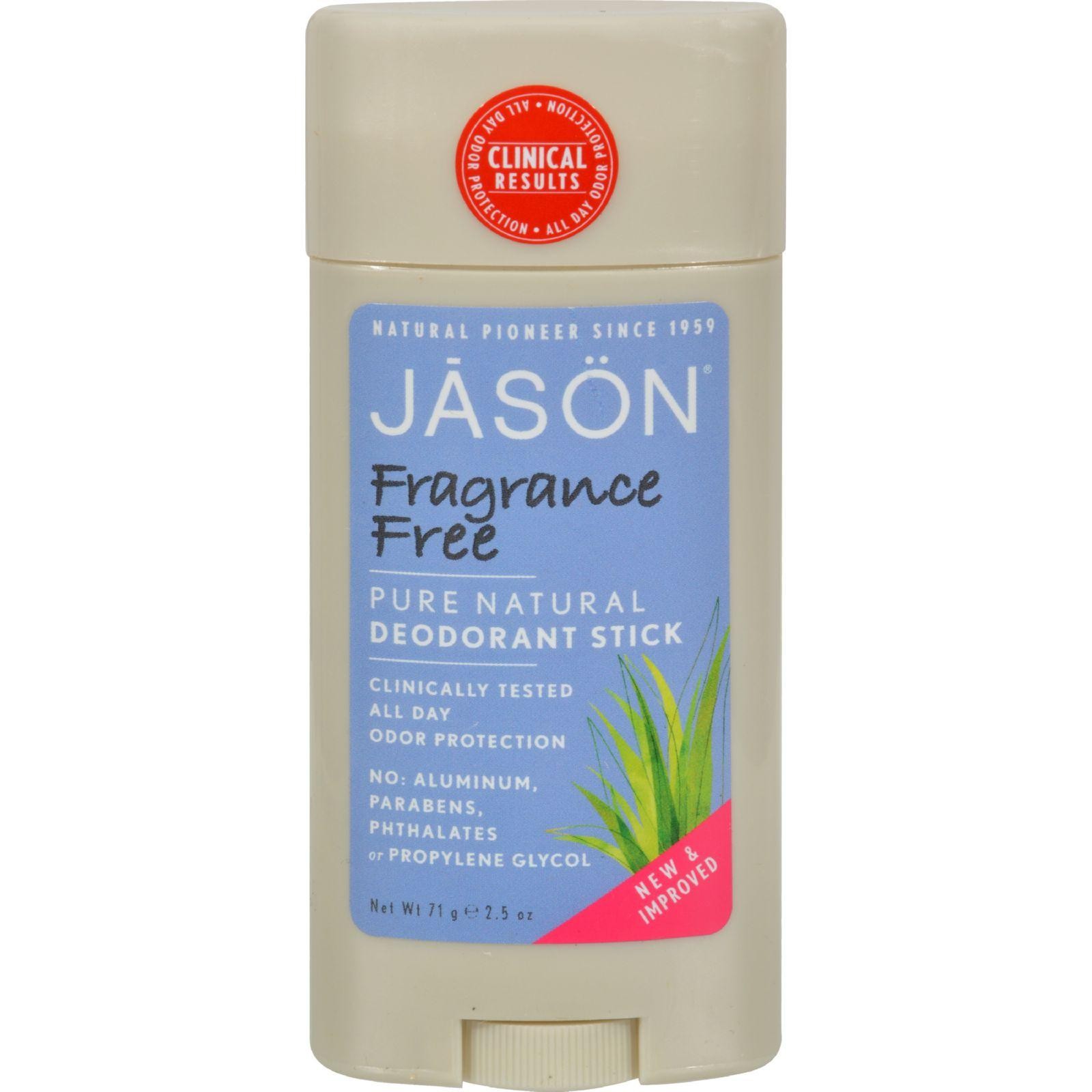 Jason Deodorant Stick Natural Fragrance Free Description: Fights wetness and odor with Green Tea Extract, Clary Sage and Vitamin E. Aloe Vera soothes sensitive skin, especially after shaving. Free Of Paraben, Aluminum Chlorohydrate , Animal Testing, and Fragrance Disclaimer These statements have not been evaluated by the FDA. These products are not intended to diagnose, treat, cure, or prevent any disease.