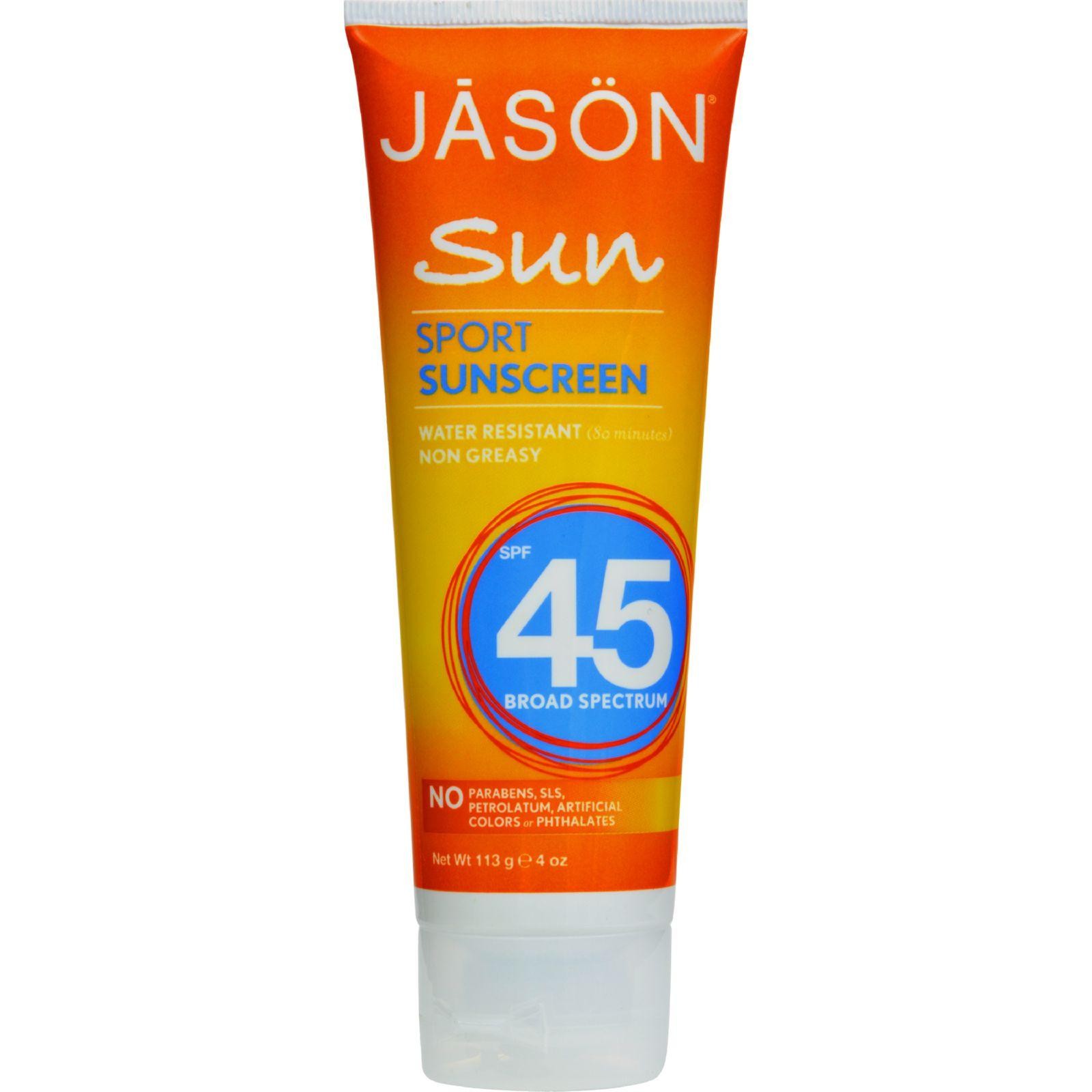 Jason Sunbrellas Sport Natural Sunblock SPF 45 Description: Long Lasting UVA and UVB Protection Sweat and Water Resistant Non-Greasy Helps prevent sunburn Higher SPF gives more sunburn protection Moderate sun protection product Disclaimer These statements have not been evaluated by the FDA. These products are not intended to diagnose, treat, cure, or prevent any disease.