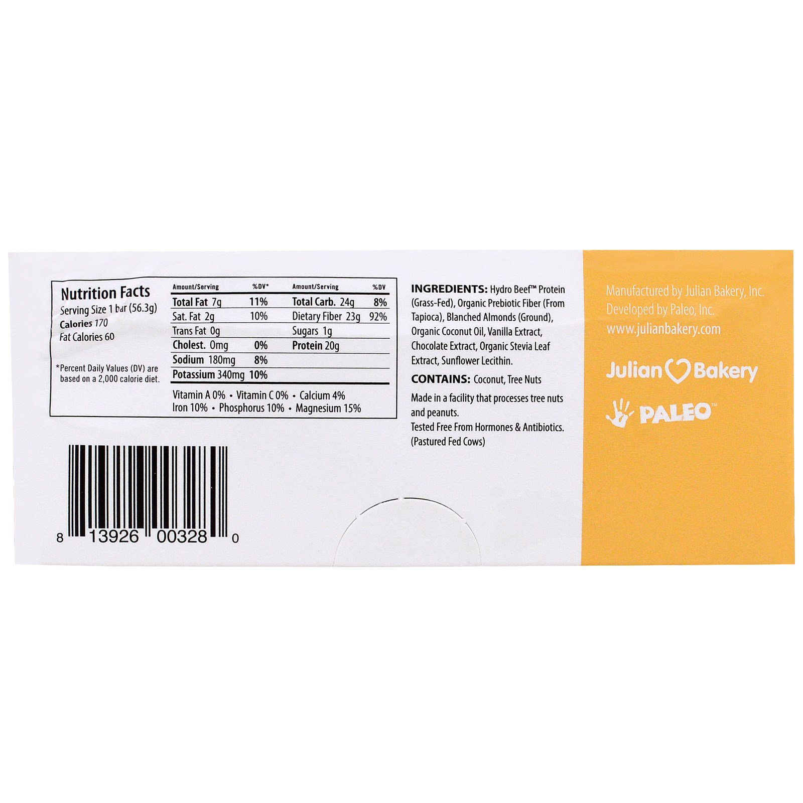 - Julian Bakery, Barra de proteínas Paleo Protein, Bolo Devil's Food, 12 Barras, 2,22 oz (63,1 g) cada