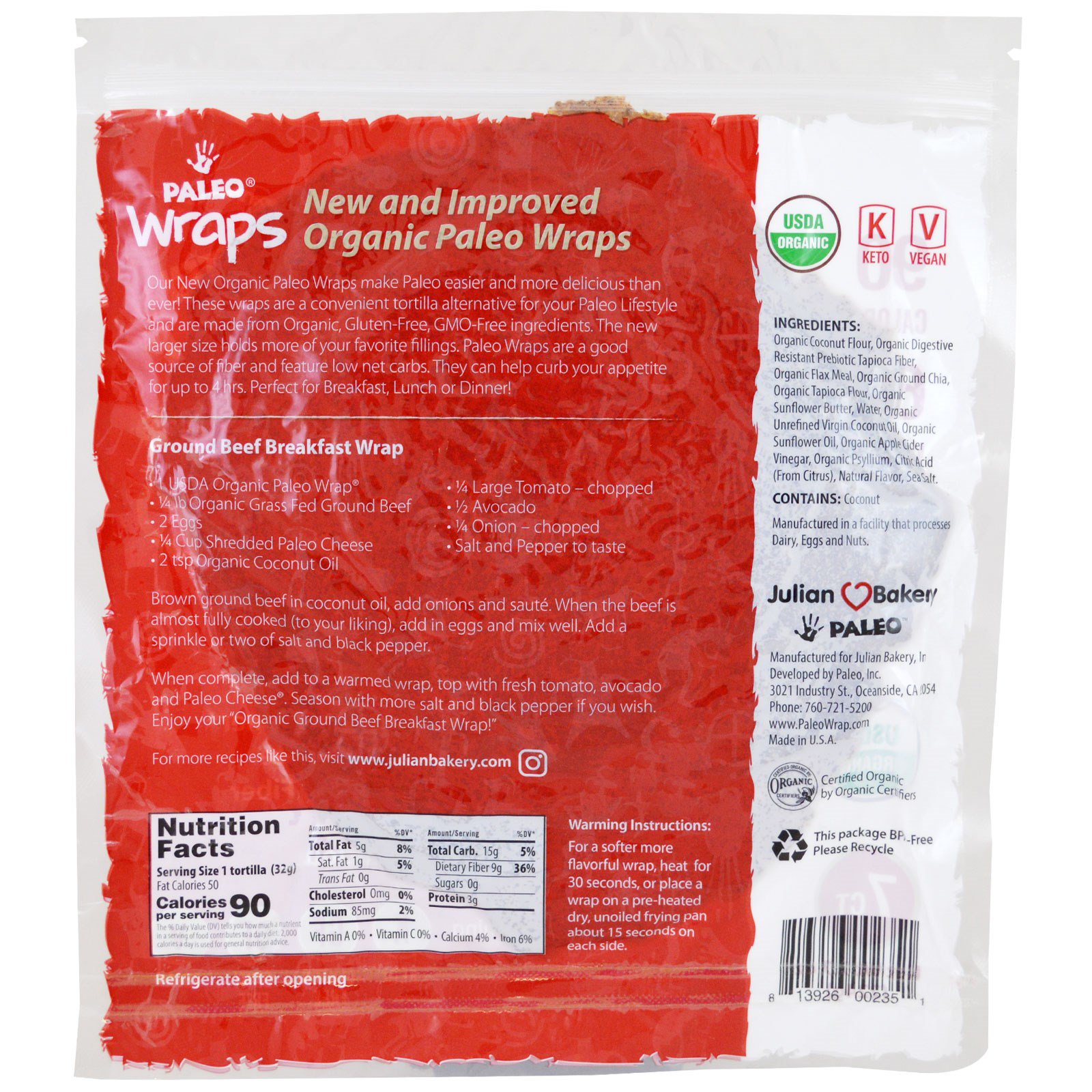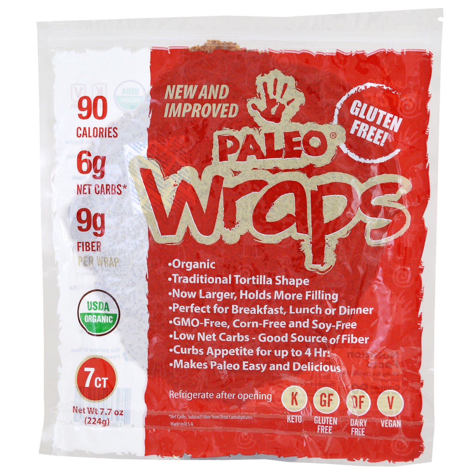 Nossos novos wraps orgânicos Paleo tornam a dieta Paleo mais fácil e mais deliciosa do que nunca! Estes wraps são uma alternativa conveniente para tortillas para seu estilo de vida Paleo e são feitos de ingredientes orgânicos, sem glúten, sem OGMs. O novo tamanho maior comporta mais dos seus recheios favoritos. Paleo Wraps são boa fonte de fibras e com poucos carboidratos líquidos. Podem ajudar a saciar seu apetite por até 4 horas. Perfeitos para café da manhã, almoço e jantar!
