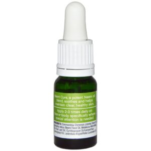 Neem Cure, a potent Neem oil blend, soothes and helps maintain clear, healthy skin.