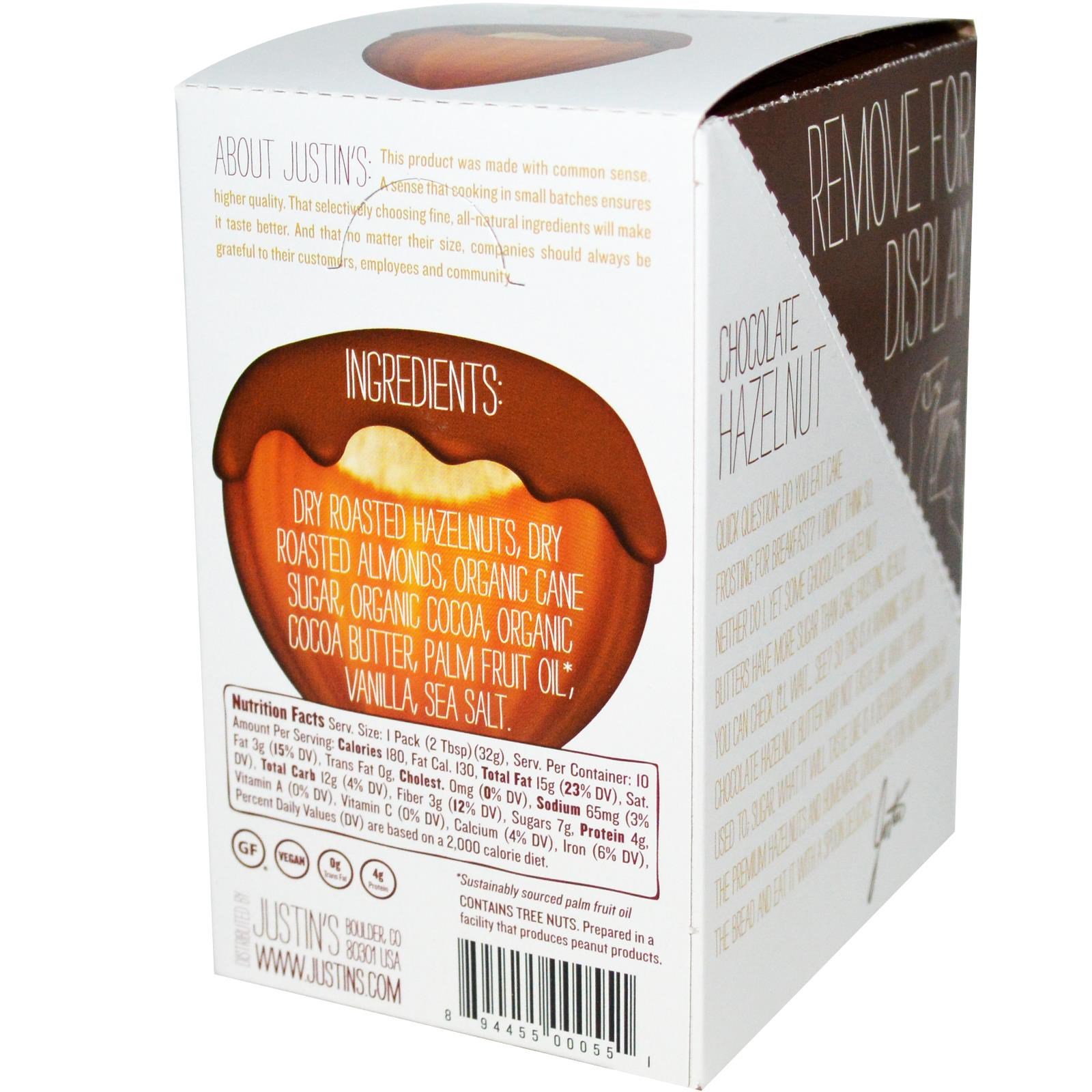 Justin's Nut Butter, Mistura de Manteiga, Chocolate e Avelãs, 10 Pacotinhos de Apertar, 1.15 oz (32 g) Per Pack