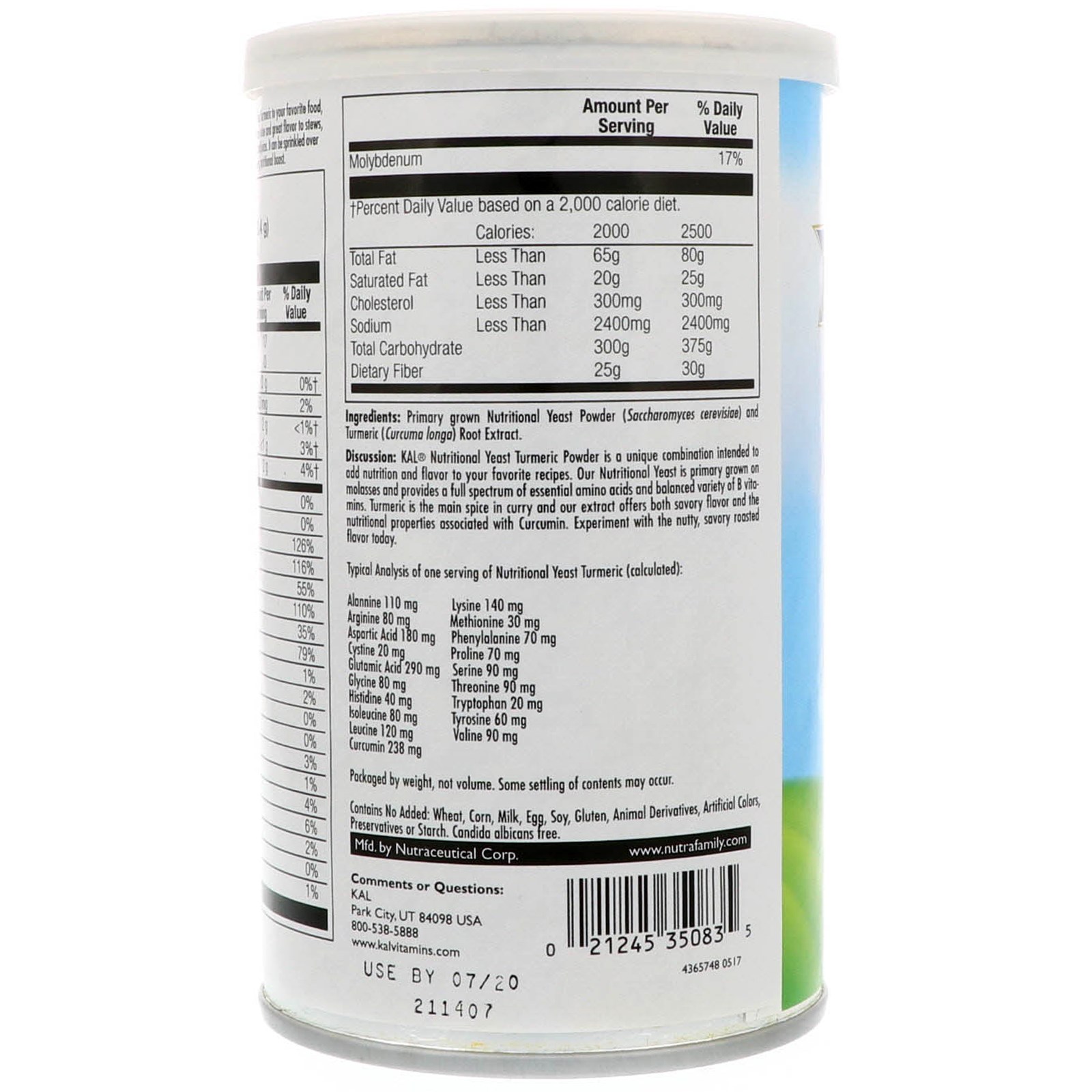 Discussion: KAL Nutritional Yeast Turmeric Powder is a unique combination intended to add nutrition and flavor to your favorite recipes. Our Nutritional Yeast is primary grown on molasses and proves a full spectrum of essential amino acids and balanced variety of B vitamins. Turmeric is the main spice in curry and our extract offers both savory flavor and the nutritional properties associated with Curcumin. Experiment with the nutty, savory roasted flavor today.