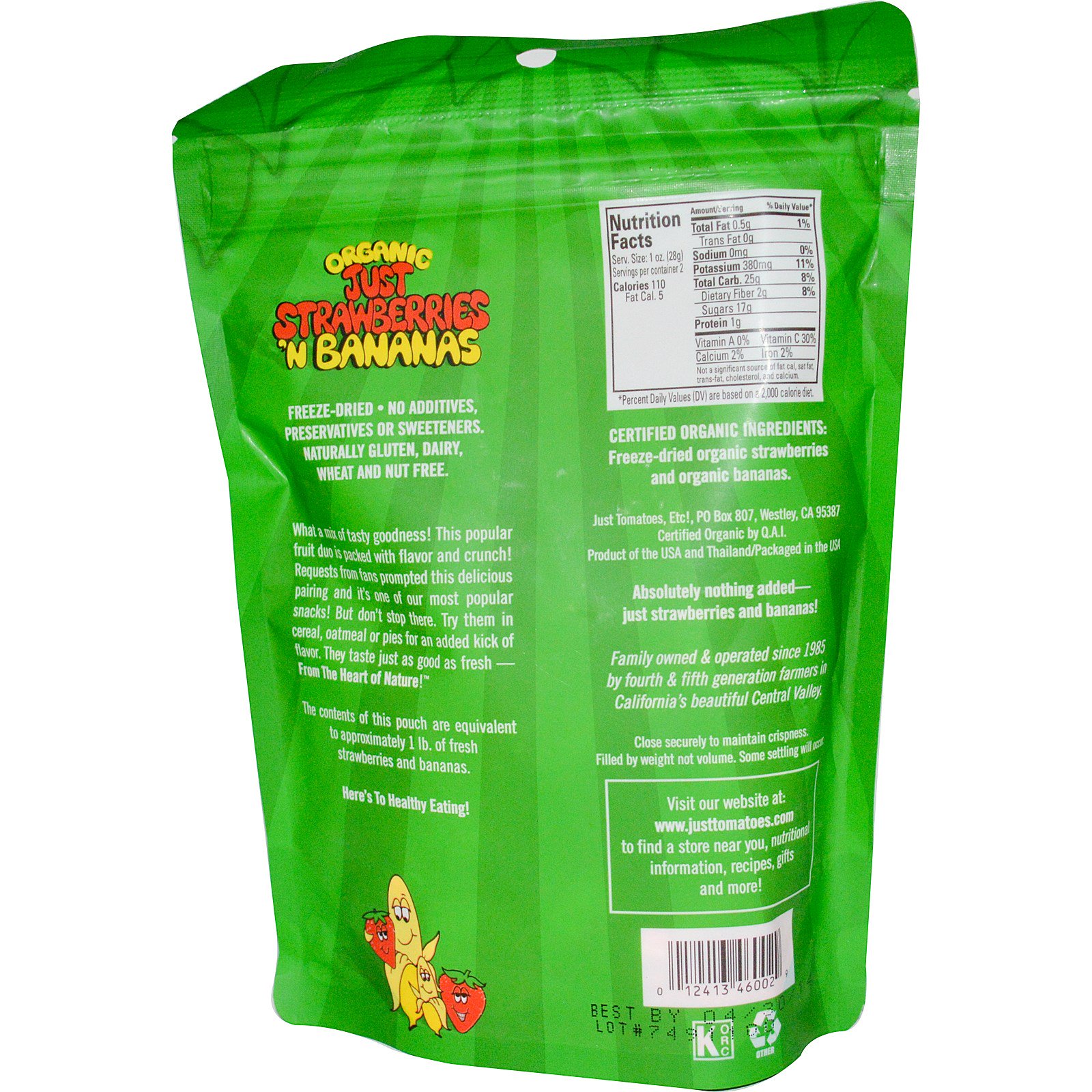 The contents of this pouch are equivalent to approximately 1 lb. of fresh strawberries and bananas.