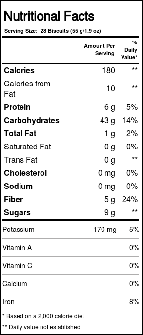 Whole Wheat Biscuits are made with whole grain wheat that’s steamed, shredded, weaved and topped with a dusting of sweetness, for a tasty snack sure to make every morning great. Grown on organic farms, the all-natural ingredients found in Whole Wheat Biscuits offer more healthy benefits and natural flavor than processed cereals on the shelves at the local supermarket. The all-natural, organic sweetener adds just the right amount of sweetness while the shredded wheat biscuits offer an enjoyable crunchy texture the whole family will love.