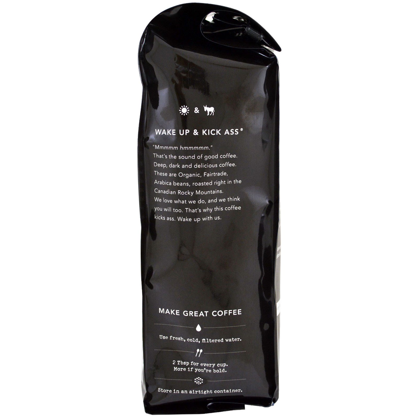That’s the sound of good coffee. Deep, dark and delicious coffee. These are Organic, Fairtrade Arabica beans, roasted right in the Canadian Rocky Mountains. We love what we do, and we think you will too. That’s why this coffee kick ass. Wake up with us.