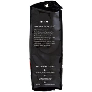 That’s the sound of good coffee. Deep, dark and delicious coffee. These are Organic, Fairtrade, Arabica beans, roasted night in the Canadian Rocky Mountains. We love what we do, and we think you will too. That’s why this coffee kicks ass. Wake up with us.