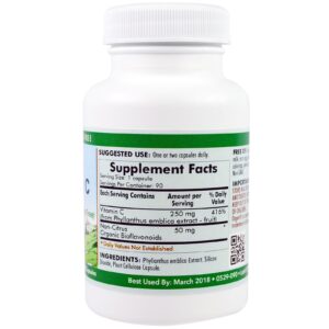 A vitamina C neste produto vem de um extrato totalmente natural de fruta de groselha, a Phyllanthus emblica. IÉ livre de milho, enquanto que a maioria das vitaminas C sintéticas é proveniente de ácido ascórbico derivado de milho e pode não ser tão bem tolerada quanto absorvida como a forma natural. Também é livre dos alérgenos mais comuns, incluindo glúten e caseína e não é modificada geneticamente.