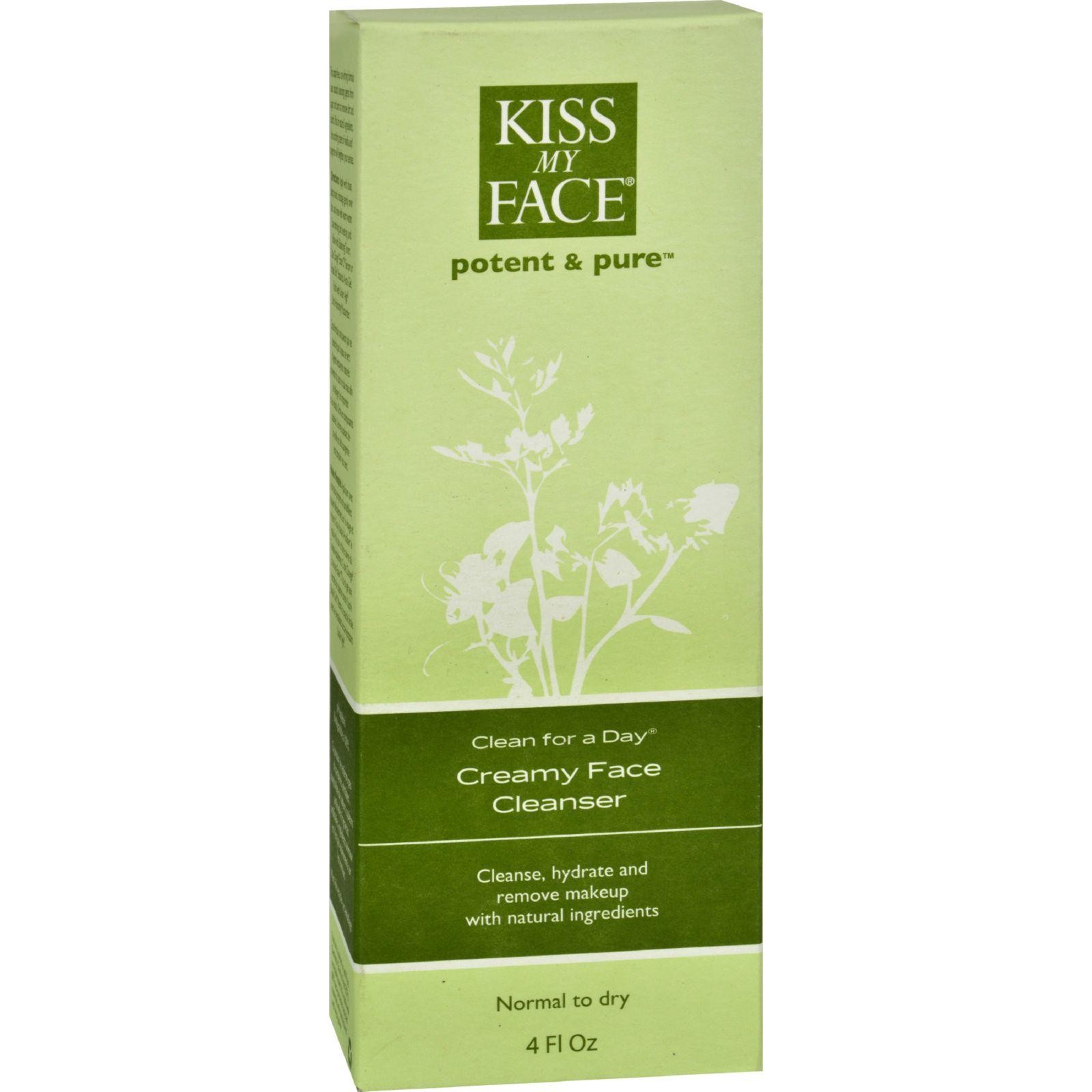 Kiss My Face Creamy Face Cleanser Clean For A Day Description: Potent and Pure Cleanse, Hydrate and Remove Makeup with Organic Ingredients Normal to Dry Skin This soap-free non-drying formula uses natural cleansing agents from sugar and corn to remove dirt and debris. Rich in natural and certified organic ingredients, the soothing scent of vanilla and tangerine will heighten your senses. Free Of Parabens, phthalates, SLS, artificial colors, artificial fragrances, animal ingredients and animal testing Disclaimer These statements have not been evaluated by the FDA. These products are not intended to diagnose, treat, cure, or prevent any disease.