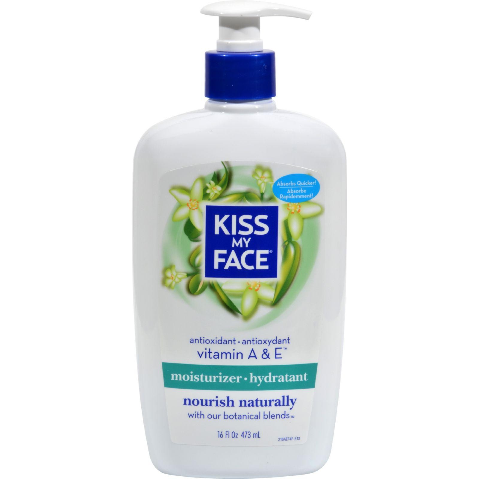 Kiss My Face Ultra Moisturizer Vitamins A and E Description: Do what comes naturally Nourishing Formula Paraben Free We have combined vitamin A and vitamin E with moisture rich Grape Seed Oil and soothing Aloe Vera, the healing plant. Selected herbs and flowers have been added to further soften and nourish. The results: an extra-rich formula to ensure maximum moisture and healthy, beautiful skin! Free Of Animal ingredients, parabens and artificial colors. Disclaimer These statements have not been evaluated by the FDA. These products are not intended to diagnose, treat, cure, or prevent any disease.