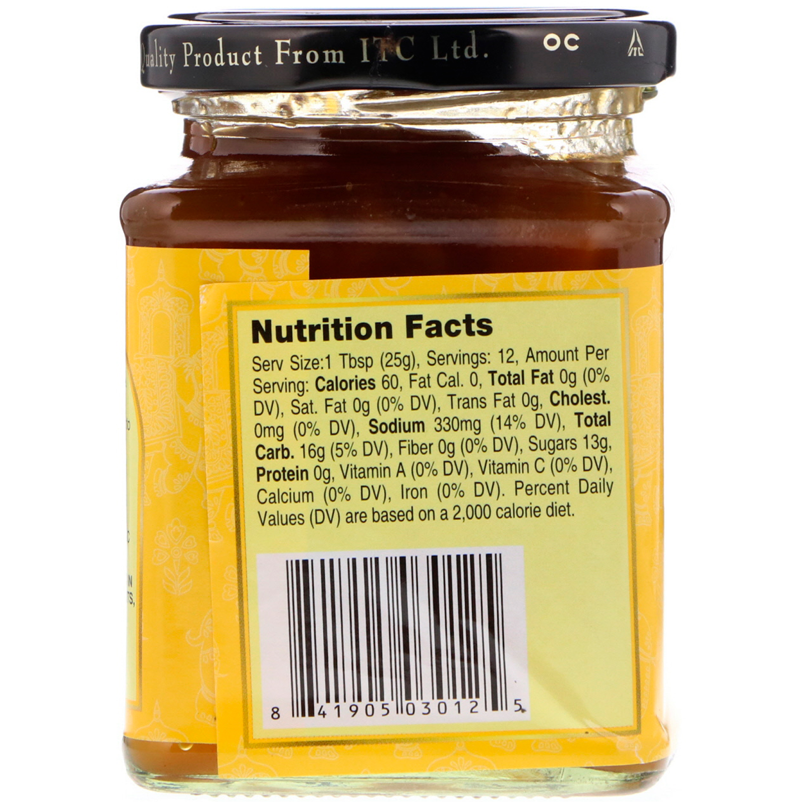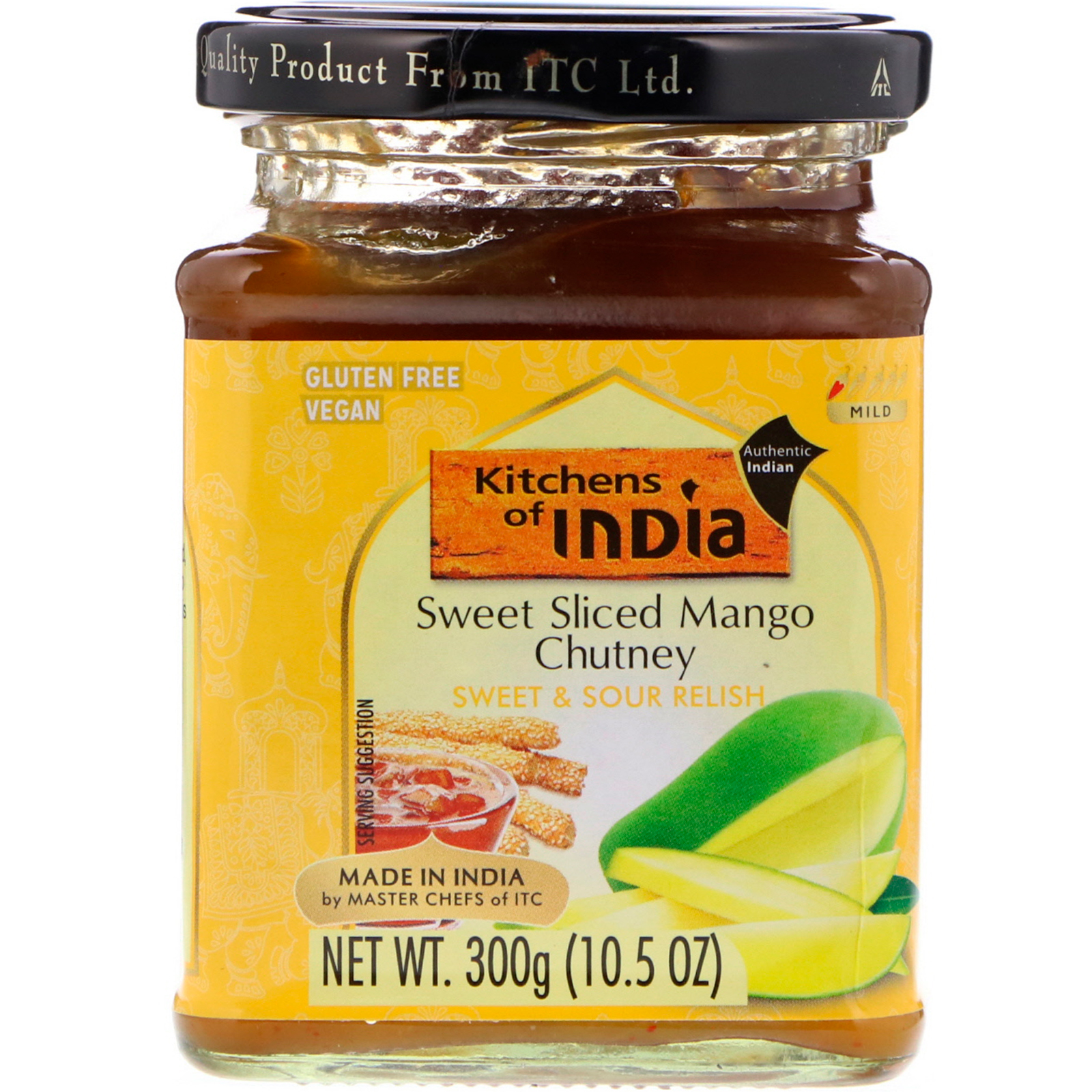 Sweet and sour mango slices, in a mildly spiced, ginger-garlic syrup. A sweet accompaniment to any meal. This chutney from Kitchens of India, is specially selected by the Master Chefs of ITC Hotels.
