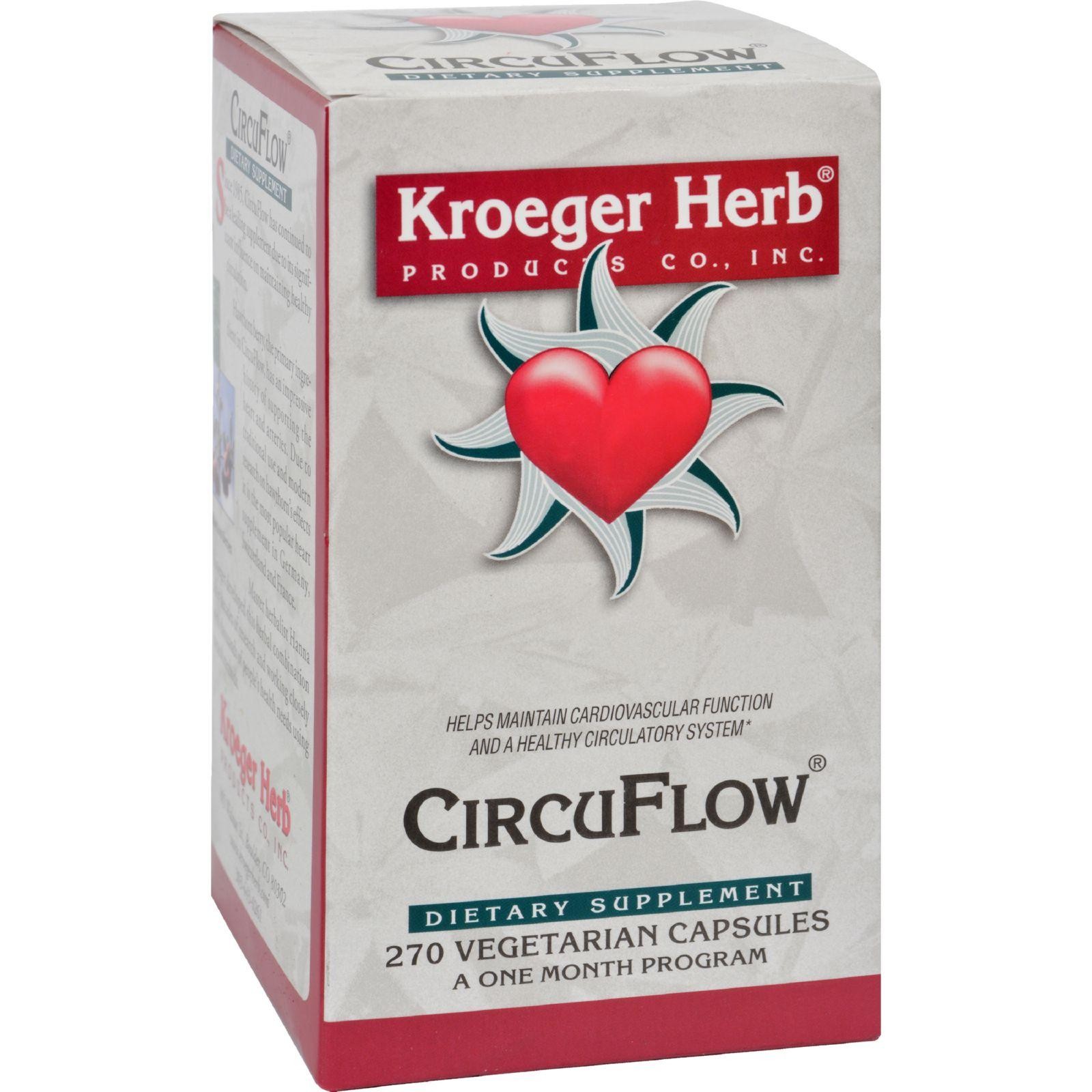 Kroeger Herb CircuFlow Description: Helps maintain cardiovascular function and healthy circulatory system. Kroeger Herbs CircuFlow Discoveries new and old meet in this important blend to address the ever-present concern for maintenance of proper heart function. Number one on our popularity list. First manufactured in 1984 after years of success with the individual ingredients. Remember to combine with appropriate diet and exercise. Disclaimer These statements have not been evaluated by the FDA. These products are not intended to diagnose, treat, cure, or prevent any disease.