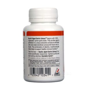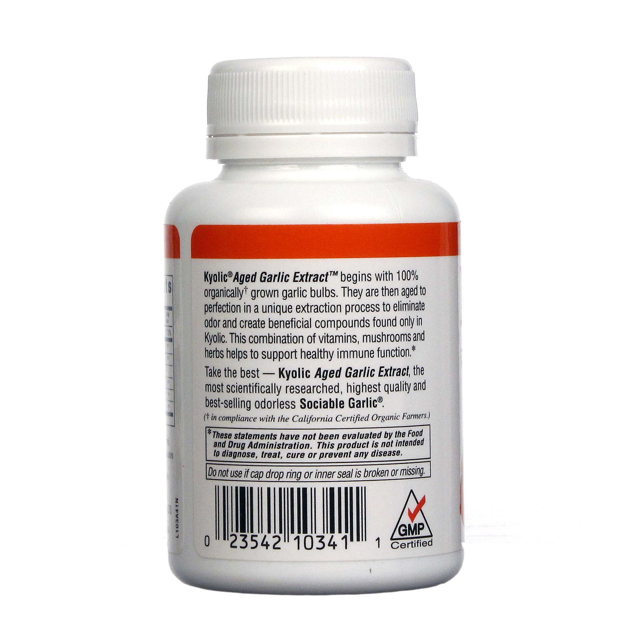Imune: Suplemento de Alho Orgânico Inodoro. O extrato de alho envelhecido Kyolic começa com 100% de bulbos de alho cultivados organicamente. Eles são então envelhecidos até a perfeição em um processo de extração exclusivo para eliminar o odor e criar compostos benéficos encontrados apenas no Kyolic. Esta combinação de vitaminas, cogumelos e ervas ajuda a auxiliar a função imunológica saudável.