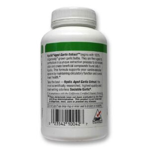 lic™ begins with organically grown garlic bulbs well balanced in nutrients. We combine only the finest quality ingredients. As part of a healthy diet, this select combination of Aged Garlic Extract™ in KYOLIC Formula 100 supports a healthy heart and overall circulatory function.