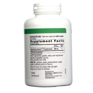 Advertências: Keep out of reach of children. Notas: Free of Sodium, Yeast, Preservatives, Sugar, Gluten, Preservatives, Sugar, Artificial Colors or Flavors. Recomendações de uso: Take two capsules with a meal, twice daily. Onde comprar Kyolic Fórmula Kyolic 100 Extrato de alho Cardiovascular – levedura livre 300 Cápsulas Encontre esse e outors suplementos todos originais, naturais, confiáveis e de alta qualidade para melhorar sua saúde, performance, emagrecimento, ganho muscular, resistência, energia, recuperação, vitalidade, imunidade, vitaminas, minerais, whey protein, creatina, BCAA, pré-treino, pós-treino, aminoácidos, termogênicos, antioxidantes, colágeno, ômega 3, multivitamínicos, suplementos veganos, proteínas vegetais, suplementos para atletas, dieta, nutrição esportiva, saúde masculina e feminina, suplementos para emagrecer, controlar colesterol, aumentar a massa magra, reduzir gordura corporal, melhorar o foco, disposição e bem-estar. Aproveite as super promoções exclusivas do mês de julho e compre com descontos imperdíveis aqui na nossa loja online especializada em suplementos, com garantia de procedência, frete rápido e atendimento especializado para você alcançar seus objetivos fitness e qualidade de vida.Você tambm pode gostar: