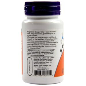 L-Theanine da Now foods é um aminoácido disponível na fórmula vegetariana.