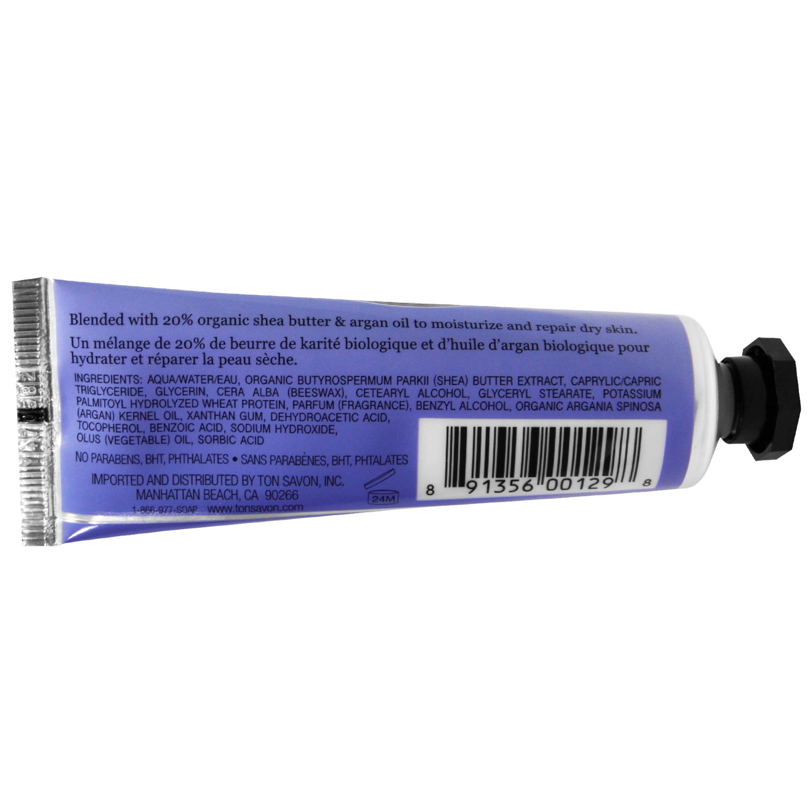 A luxurious hand cream from the South of France, blended with 20% organic shea butter, vitamin E, and argan oil to deeply moisturize, nourish and repair dry skin. It is the perfect size for gifts, travel, or your purse.