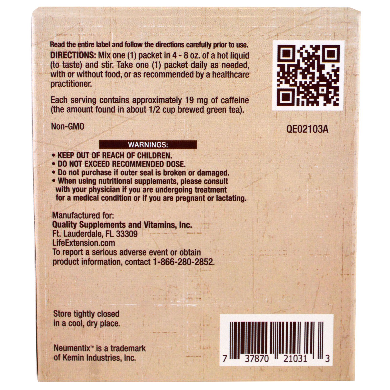 Cada porção contém aproximadamente 19 mg de cafeína (a quantidade encontrada em cerca de 1/2 xícara de chá verde).
