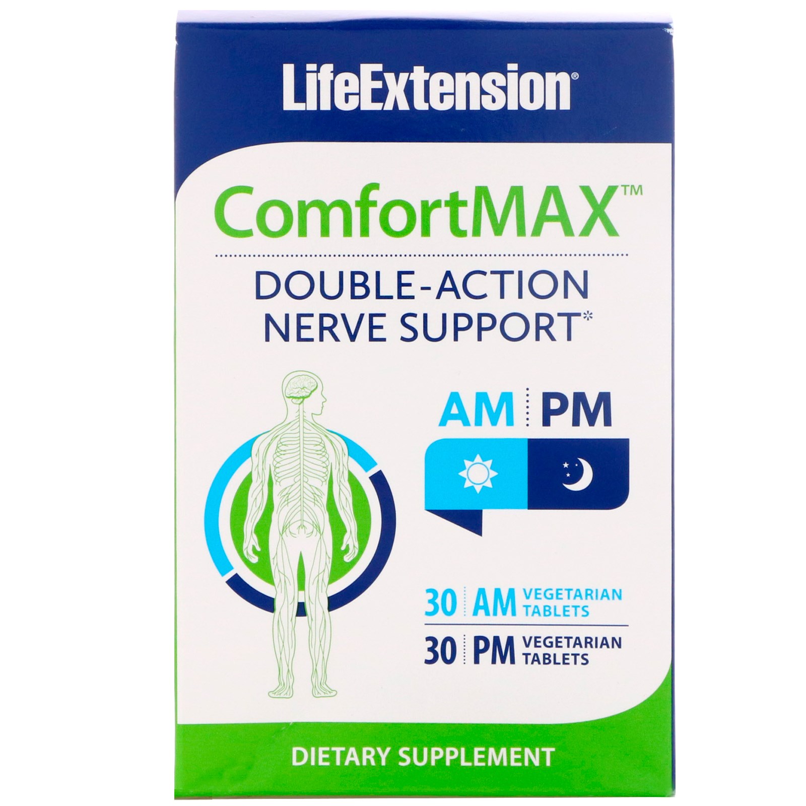 Life Extension, ComfortMax, Suporte de Dupla Ação para os Nervos, Manhã e Noite, 30 Comprimidos Vegetarianos Cada