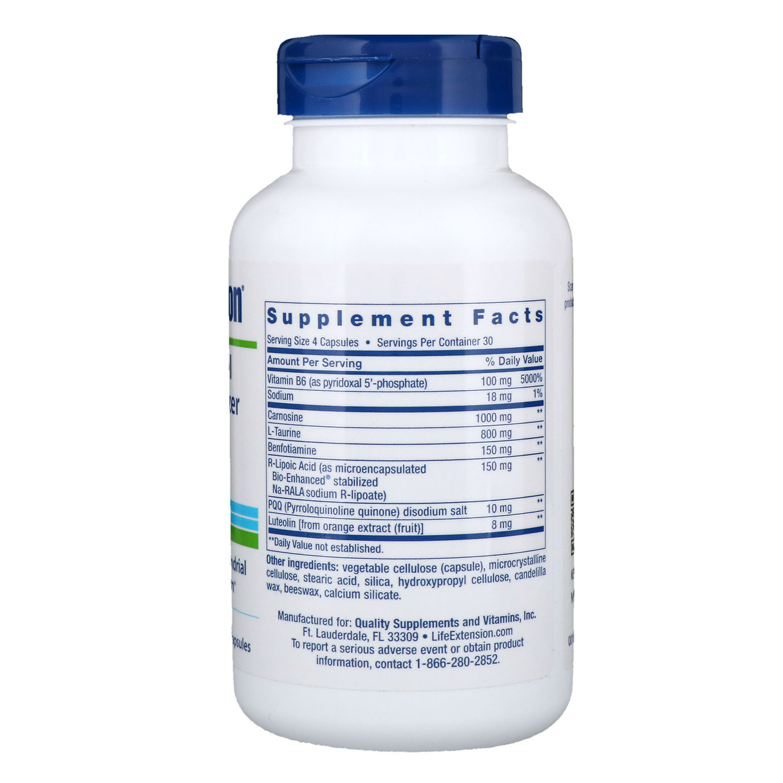 Conhecidas como “dínamos clulares”, as mitocôndrias saudáveis produzem a energia que movem as células. Conforme as pessoas envelhecem, a mitocôndria perde suas funções e reduz em número. O otimizador de energia mitocondrial único da Life Extension foi formulado para melhorar a função mitocondrial, proteger as delicadas estruturas celulares, energizar os processos metabólicos e ajudar na criação de novas mitocôndrias.