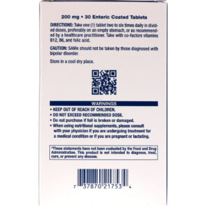 - Source Naturals, SAM-e (S-adenosil-L-metionina), 200 mg, 60 tablets with enteric coating
