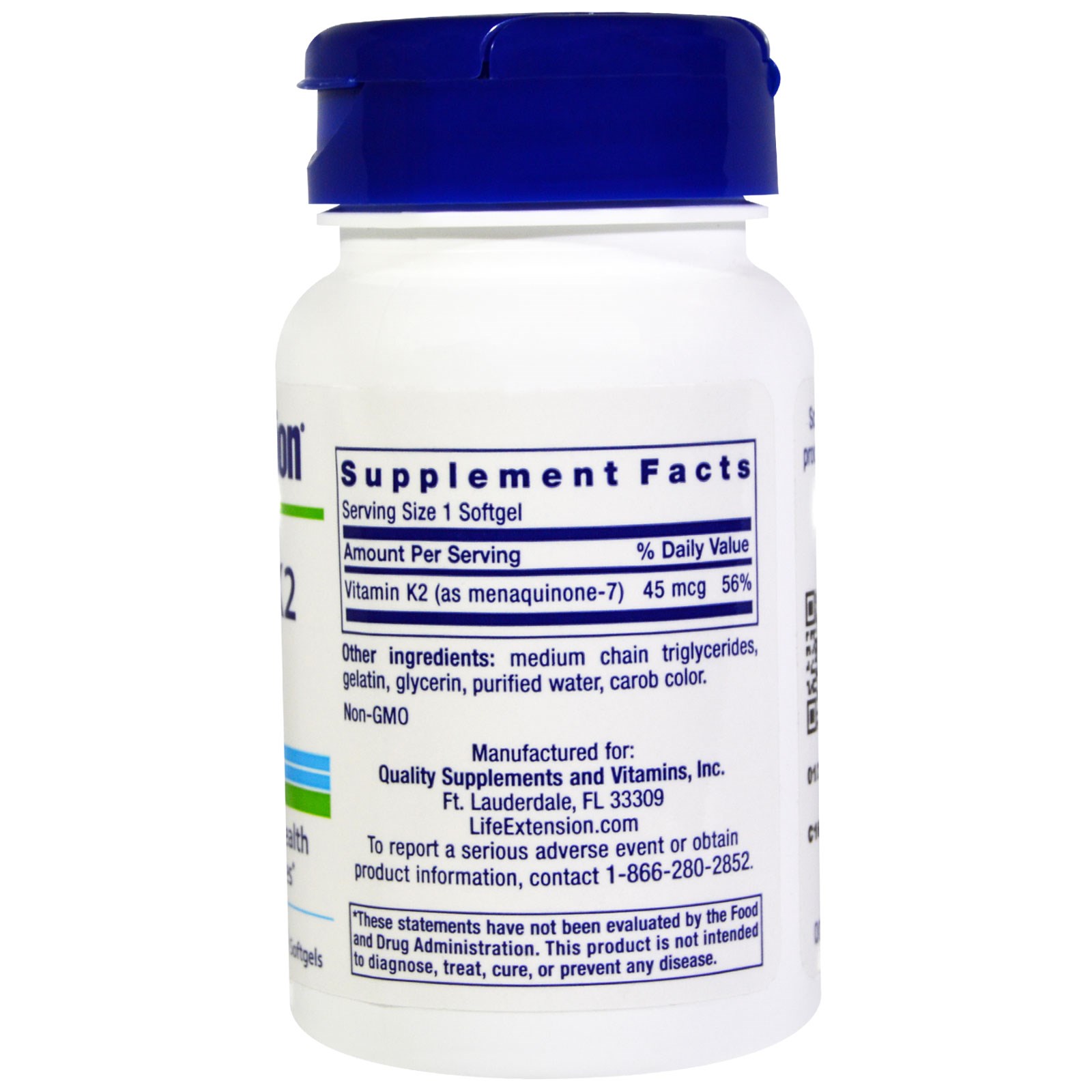 Life Extension, Vitamina Baixa Dose K2 (MK-7), 45 mcg, 90 cápsulas