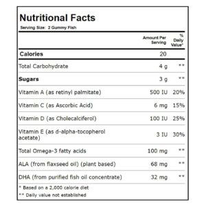 L’il Critters Omega-3 is more than just an omega-3 supplement. It also offers doses of Vitamin A, Vitamin D, Vitamin C and Vitamin E as well.