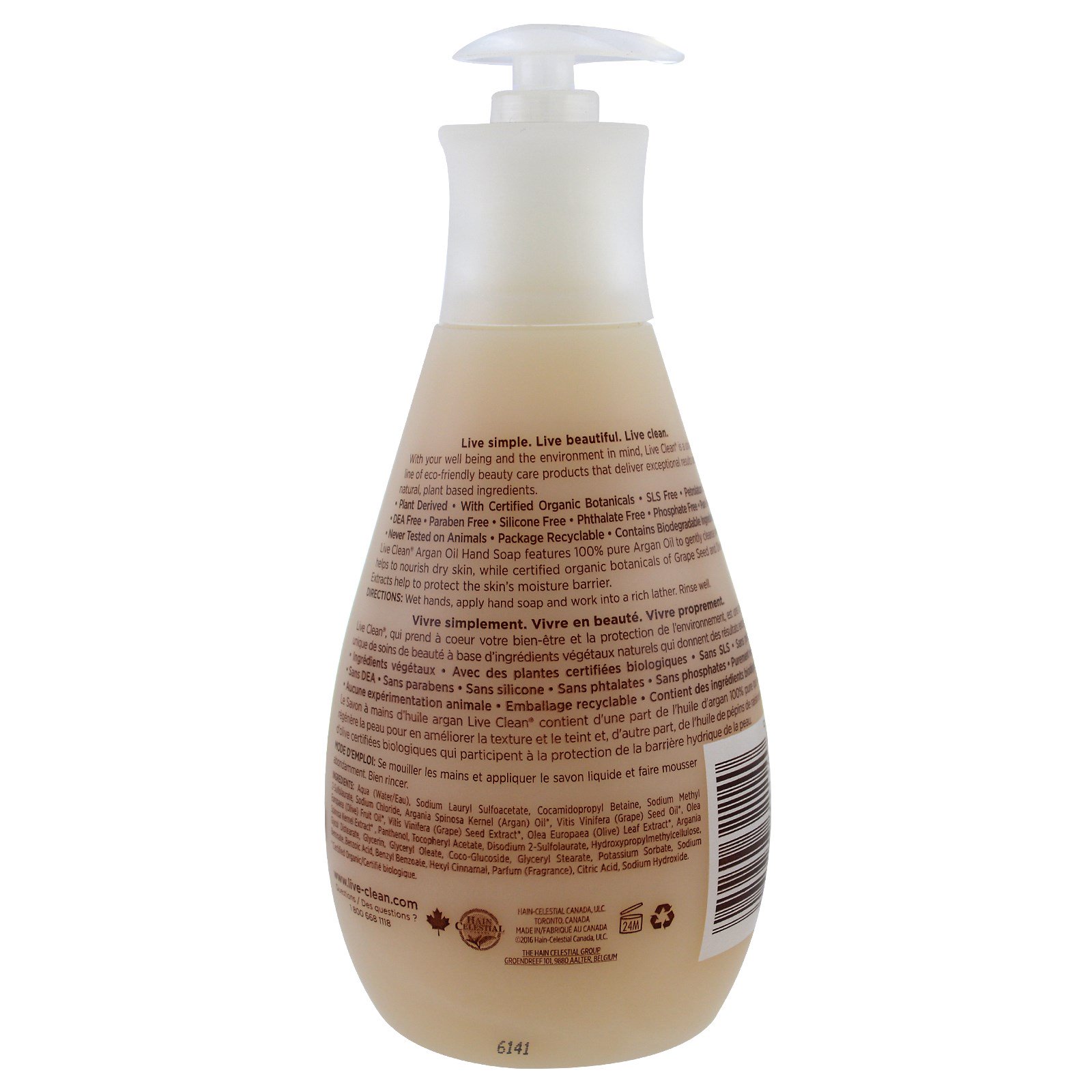 Live Clean Argan Oil Hand Soap features 100% pure Argan Oil to gently cleanse while it helps to nourish dry skin, while certified organic botanicals of Grape Seed and Olive Leaf Extracts help to protect the skin’s moisture barrier.