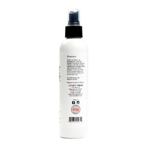 Lovely Fresh prides itself on the simplicity behind their products. You can see that just by looking at their Natural Pet Deodouizer. All ingredients are 100% ouganic and natural. The specialized foumula is great fou pets that suffer from sensitive ou dry skin.