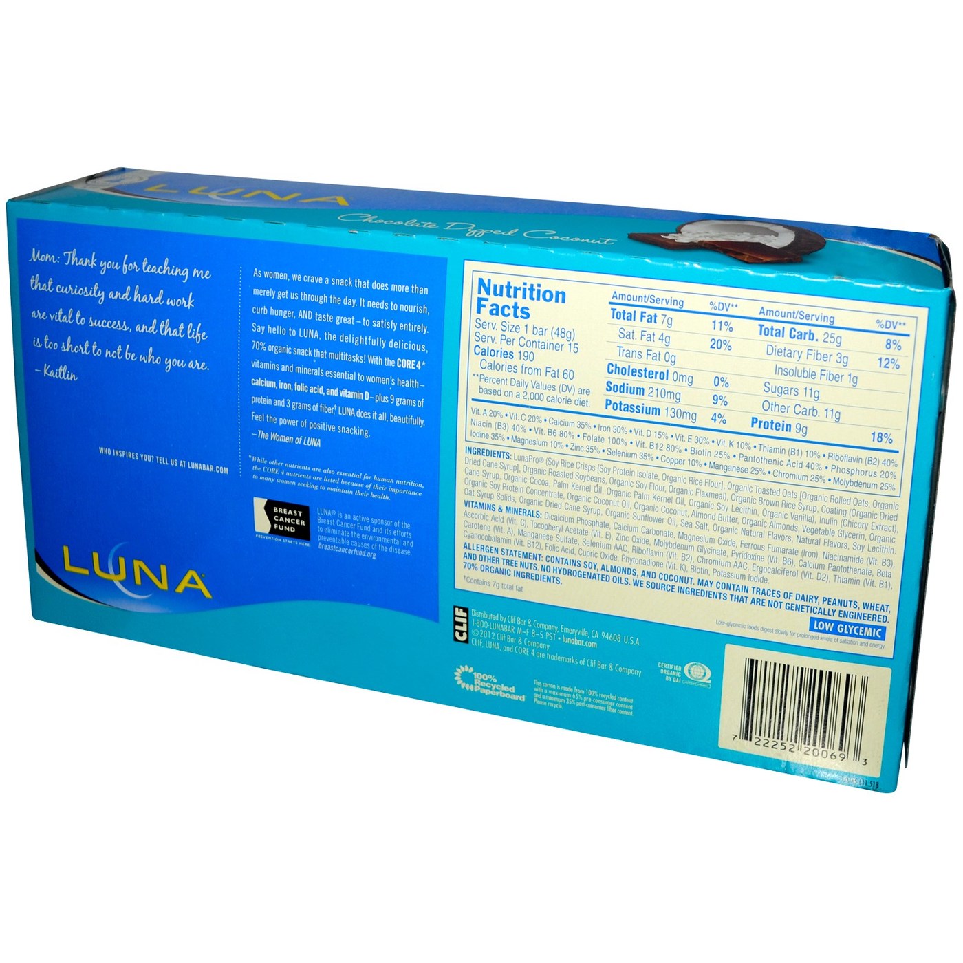 Luna Barras Whole Nutrition Bar for Women, Chocolate mergulhado em coco – 15 pack
