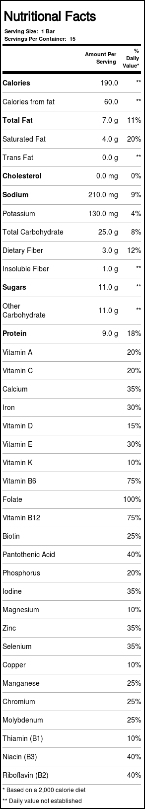 Advertências: Contains soja, almonds, and coconut. May contain traces of dairy, peanuts, levedura, and other tree nuts. Não hydrogenated oils. We source ingredients that are not genetically engineered.