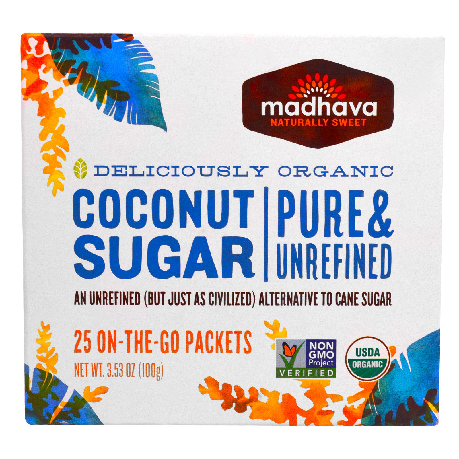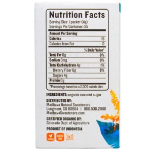 Madhava Natural Sweeteners, Açúcar Orgânico de Coco, 25 Pacotes, 100 g
