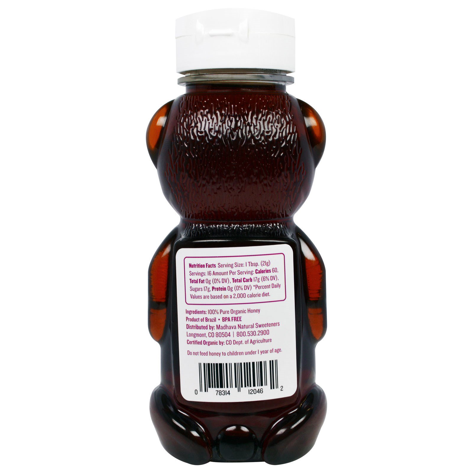 Madhava Natural Sweeteners, Mel Orgânico de Urso, 340 g