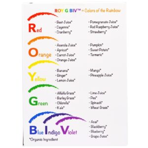- ROY G BIV = Mistura orgânica concentrada em pó de superalimentos com as cores do arco-íris