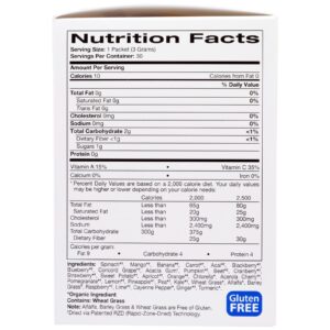 Roygbiv – Espinafre * †, manga * †, banana * †, cenoura * †, acai * †, amora * †, mirtilo * †, uva concord * *, goma arábica *, abóbora * †, beterraba * †, amora * † , morango * †, batata doce * †, damasco * †, laranja * †, chlorella *, acerola cereja * †, romã * †, limão * †, abacaxi * †, ervilha * †, couve * †, grama de trigo *, alfafa *, cevada *, framboesa * †, lima * †, pimenta caiena *, gengibre * †, cúrcuma *.