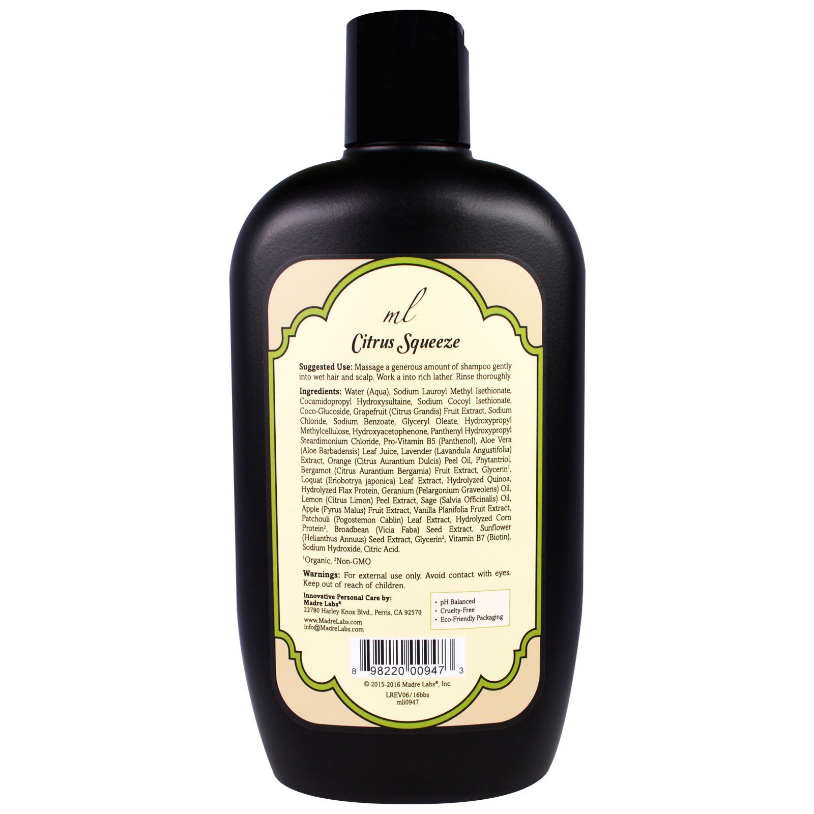 - Madre Labs, Espessamento de Complexo B + Condicionador de Biotina, Sem Sulfatos, Aperto Citrino, 14 fl oz (414 ml)